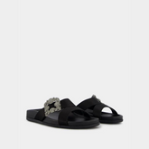 This outfit combines the timeless elegance of Black Satin Mules from Manolo Blahnik with a delicate Black Lace-Trim Silk Top from Dolce & Gabbana. Perfect for a relaxed yet sophisticated office look, these pieces exude class and understated luxury.