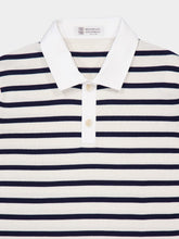 White and Navy Blue Striped Polo Sweater Short Sleeve