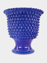 This stunning large footed vase features intricate pinecone reliefs, adding a touch of elegance and texture to any space. The vibrant blue ceramic enhances its sophisticated and bold appearance, making it a perfect centerpiece for your decor. Handcrafted with meticulous attention to detail, this vase seamlessly blends style and functionality. Ideal for both modern and traditional interiors, it brings a sense of nature and artistry to your home.
