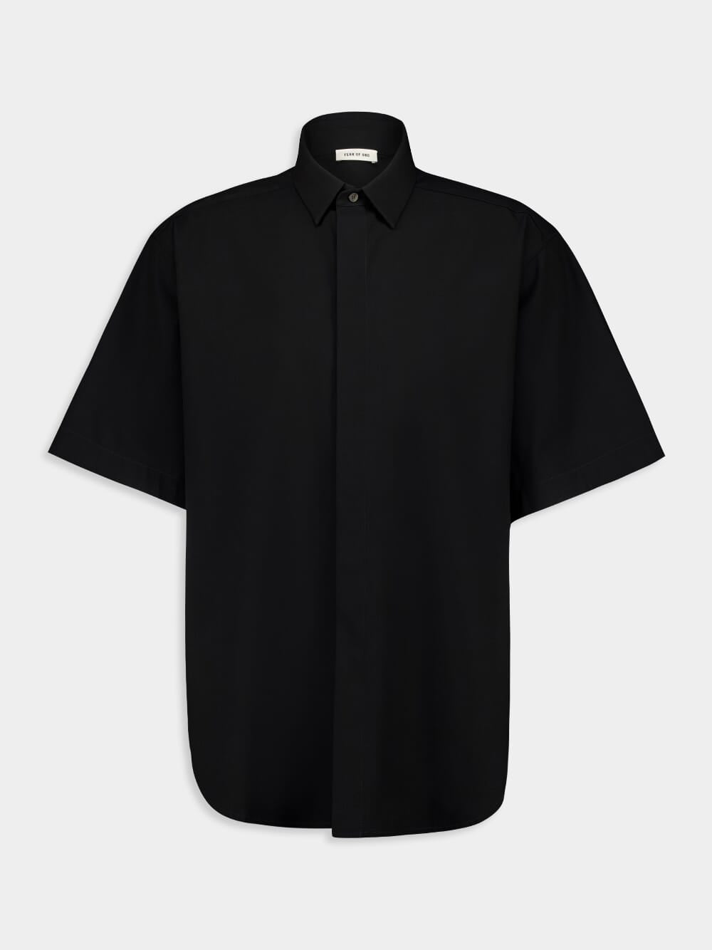 The Black Oxford Short Sleeve Shirt by Fear of God is a refined reimagining of a classic, crafted in Italy from a luxurious virgin wool-cotton blend with a hint of elastane for comfort and stretch. Featuring a point collar and minimalist covered placket with horn buttons, it offers a sleek, tailored silhouette. A discreet Fear of God label at the back collar adds a signature finish. A timeless piece with elevated structure and modern minimalism.