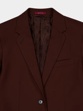 This chocolate brown jacket by Gucci redefines tailoring with a sleek, contemporary edge. Crafted from lightweight stretch wool, it offers a refined fit that moves with ease while maintaining a sharp silhouette. Designed with a single-breasted front and classic notch lapels, it features flap pockets and a clean, minimalist finish. An essential piece for modern suiting, equally suited for structured daywear or elevated evening looks.