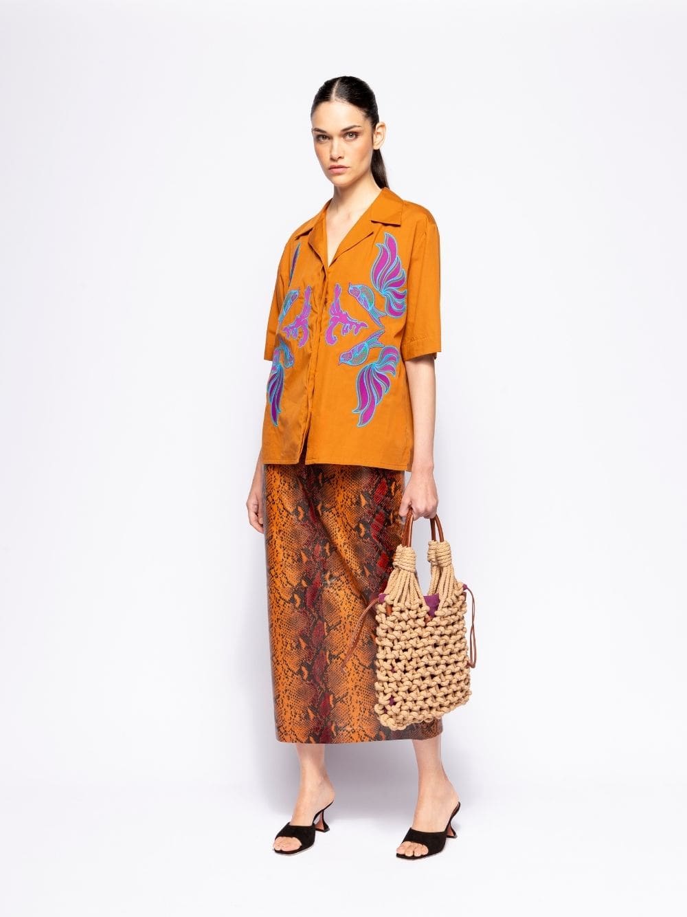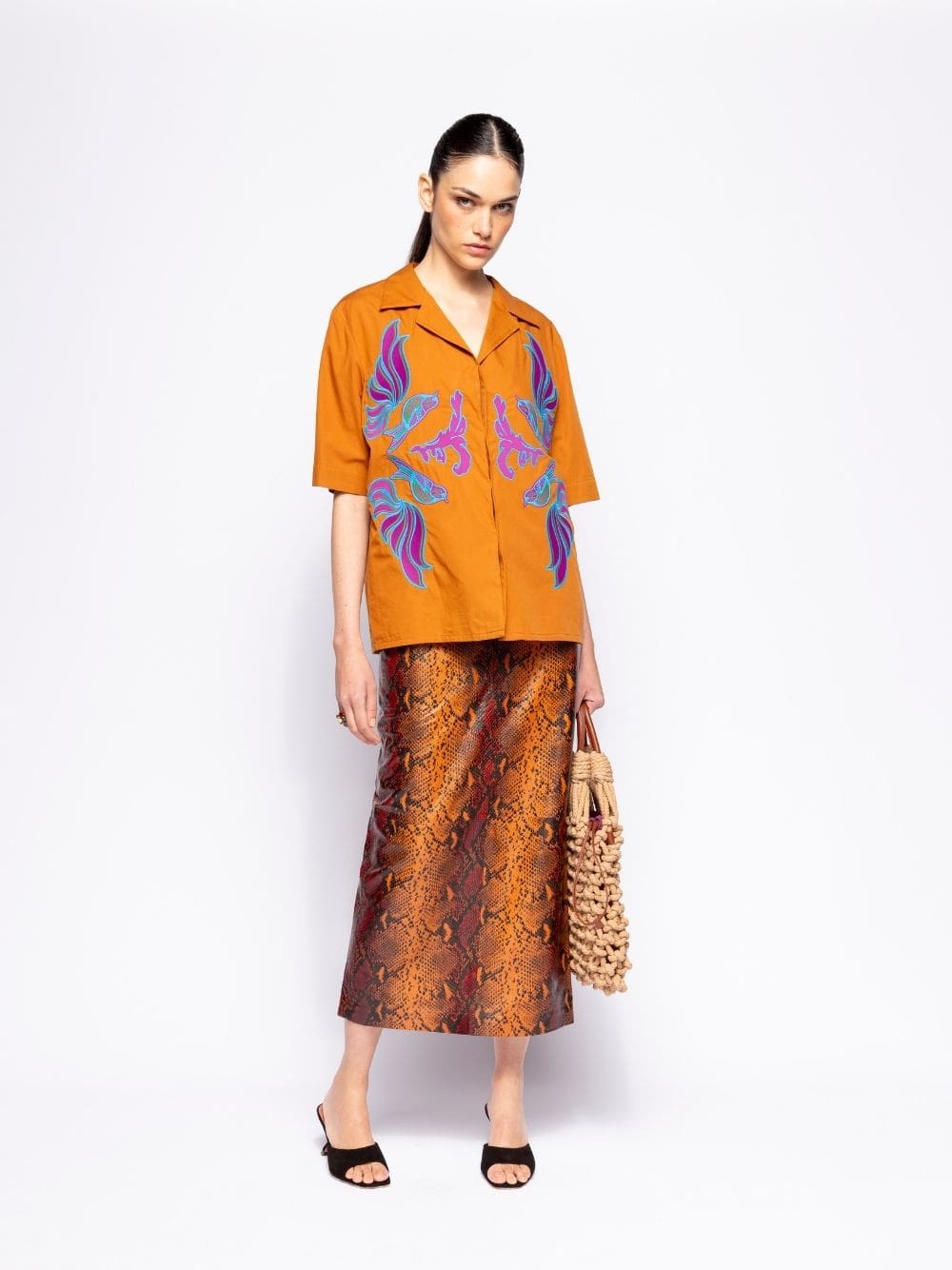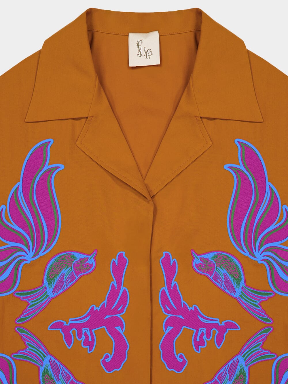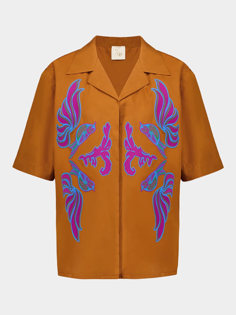Add a touch of charm to your wardrobe with the Daisy Caramel Café Embroidered Poplin Shirt. Crafted from 100% cotton poplin, this short-sleeve shirt offers a crisp, breathable feel with a tailored fit. The soft caramel hue is beautifully complemented by delicate embroidery, creating a refined yet playful design. Perfect for both casual and more polished looks, this shirt is an effortlessly versatile piece that pairs well with everything from skirts to trousers. Made in Portugal.