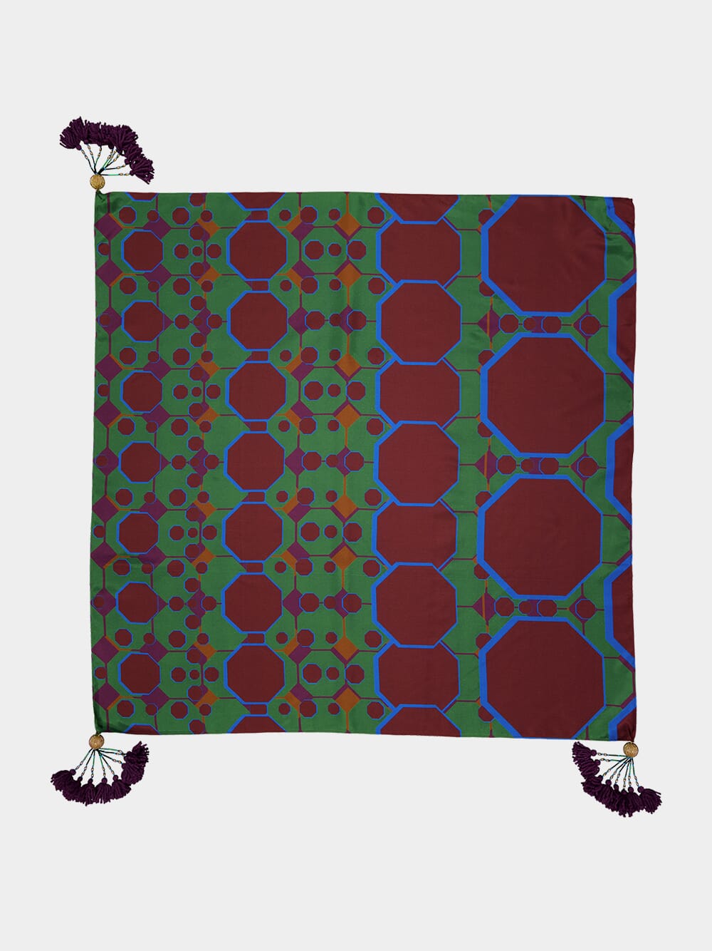 Granita Octa Print Printed Silk Twill Scarf with Trims
