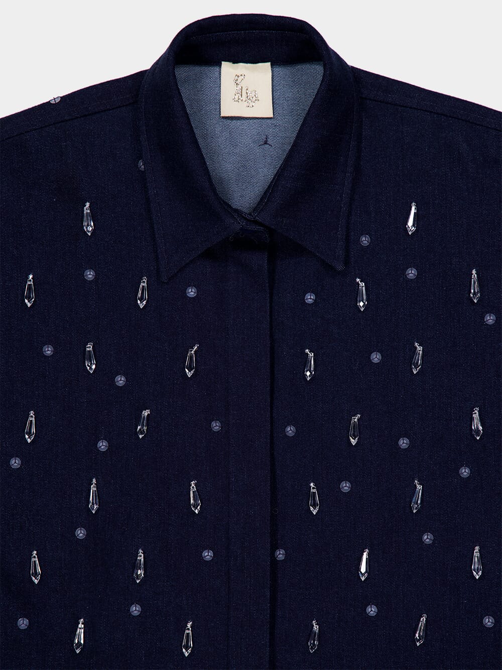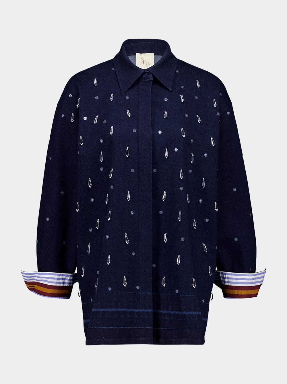 Jasmine Blue Hand-Embroidered Denim Shirt
