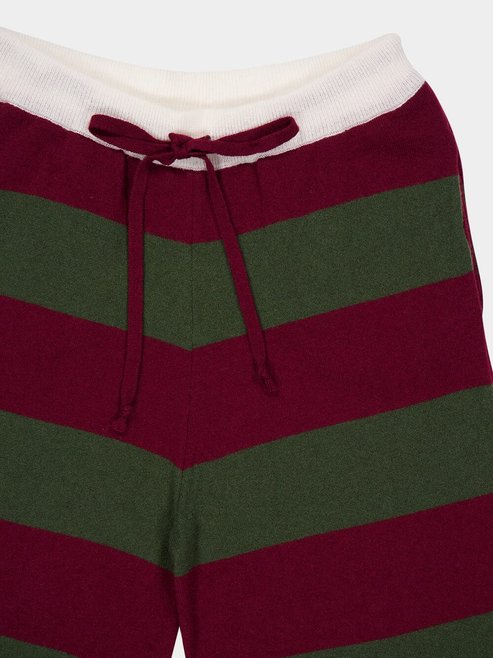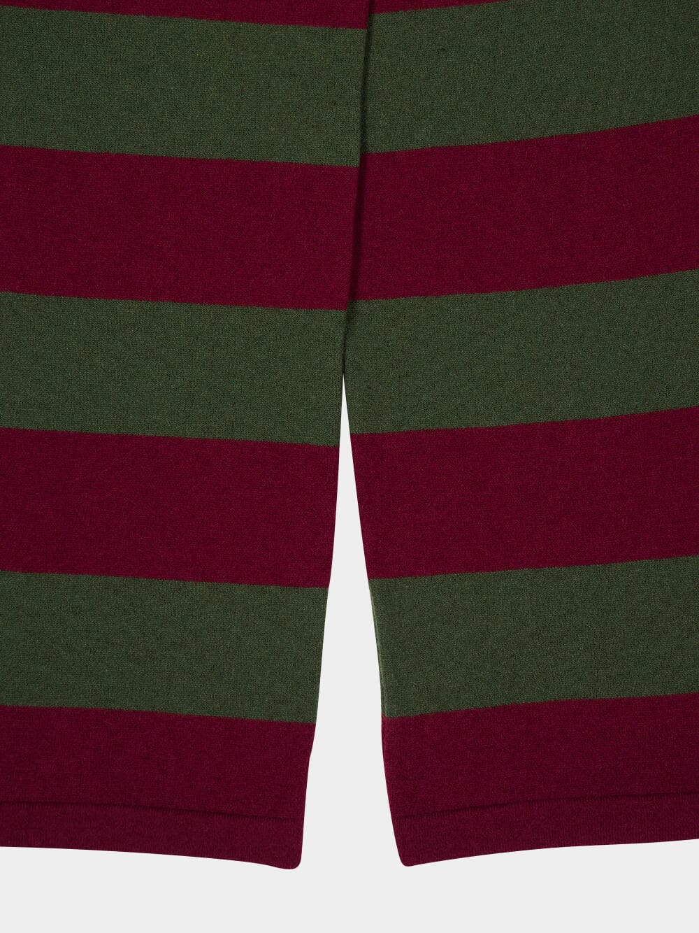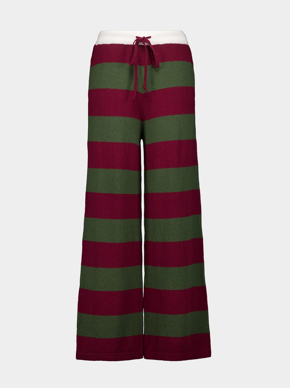 Bold yet refined, the Mira Cabernet and Peacoat Striped Knitted Wide-Leg Pants bring a modern twist to classic knitwear. Crafted from a soft blend of wool and cashmere, these wide-leg pants feature striking green and burgundy stripes that offer a dynamic visual contrast. The relaxed silhouette provides effortless movement and comfort, while the luxurious knit adds warmth and sophistication. A standout piece designed to elevate everyday dressing. Made in Portugal.