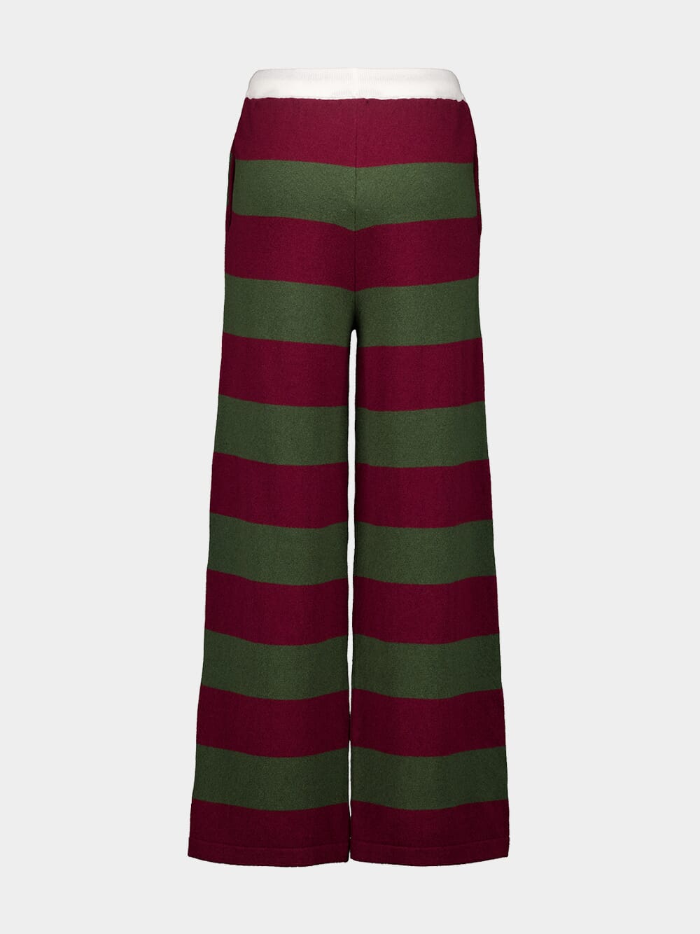 Mira Cabernet and Peacoat Striped Knitted Wide-Leg Pants