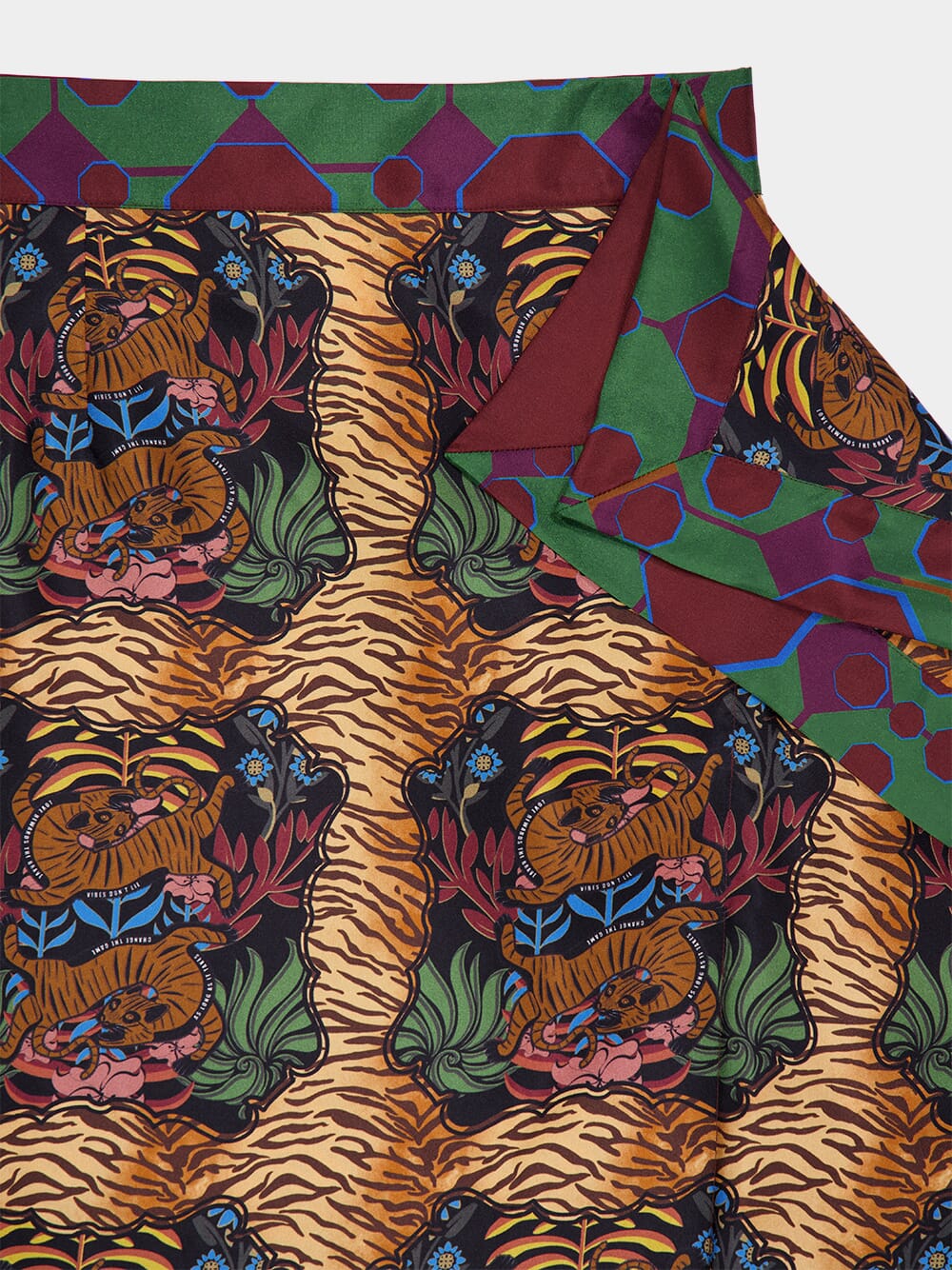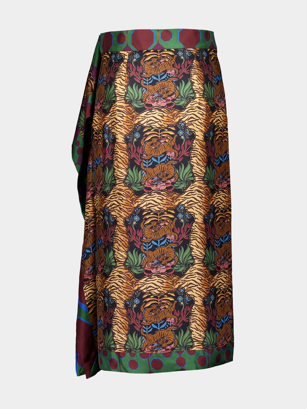 Step into a world of elegance with the Wisteria Dreamframe Print Wrap Skirt. Crafted from 100% luxurious silk twill, this skirt features a striking double-printed design that beautifully blends vivid patterns for a bold yet refined look. The wrap silhouette offers a flattering fit, with the silk’s natural fluidity creating graceful movement with every step. Perfect for both day-to-night wear, this skirt is an elevated addition to any wardrobe. Made in Portugal.