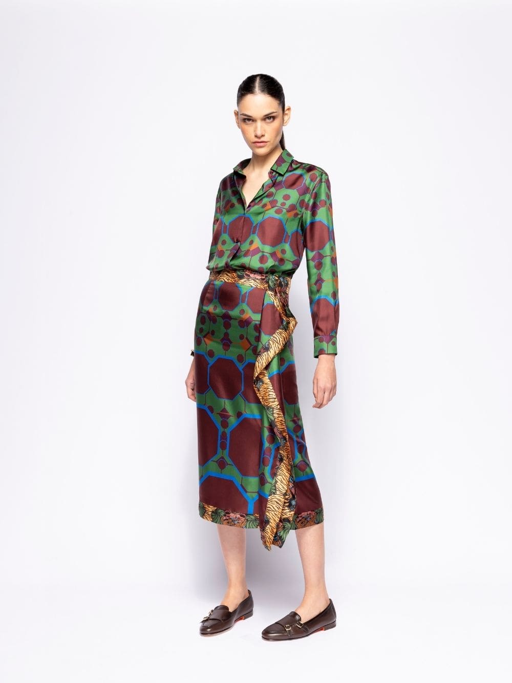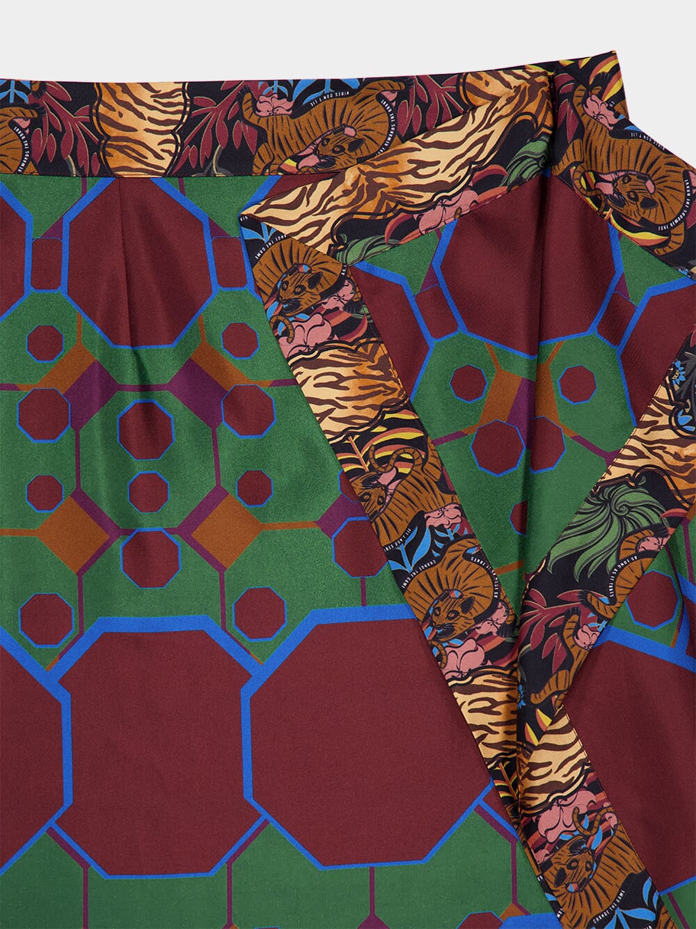 Wisteria Octa Print Wrap Skirt in Double Printed Silk Twill