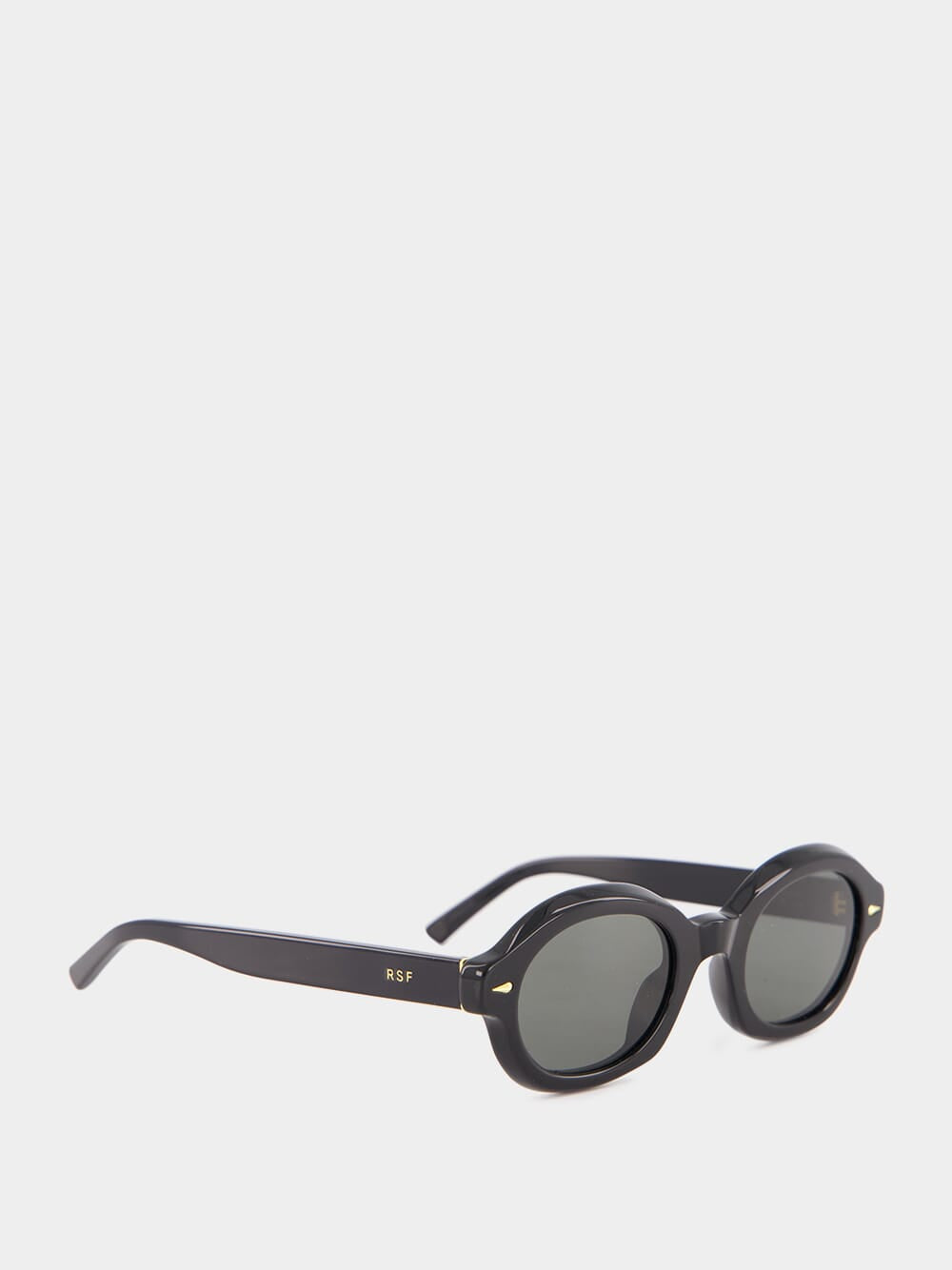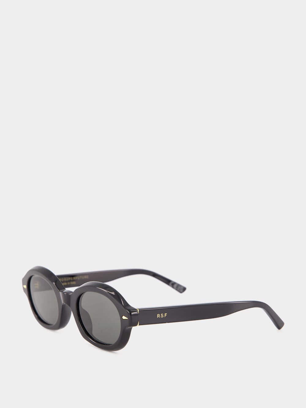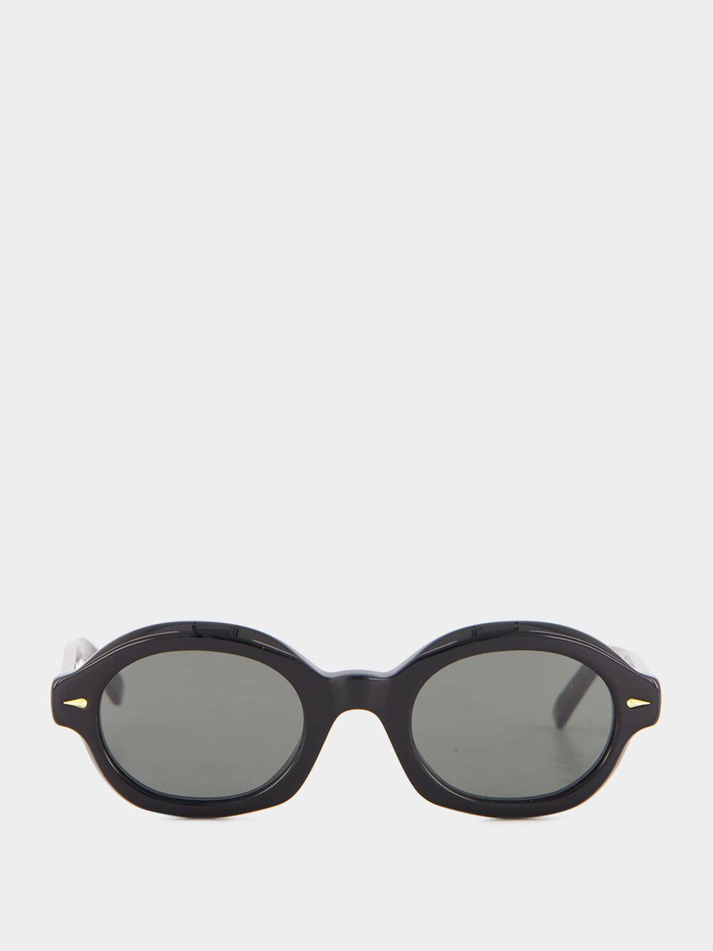 The Marzo sunglasses in black feature a distinctive oval and compact silhouette, inspired by 1960s eyewear. Crafted with chunky acetate rims and low, protruding temple tips, these sunglasses are both stylish and bold. Hand-crafted details and sleek temples elevate the design, making them perfect for everyday casual wear. Finished with gold accents and black lenses, these sunglasses are made in Italy, embodying a fresh take on a classic look.