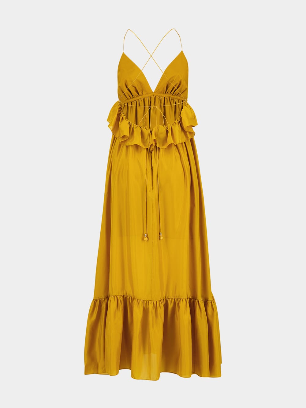 Gold Rhiannon Ruffle Silk Maxi Dress
