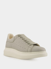 These Alexander McQueen low-top sneakers are crafted in Dumbo grain leather in a refined cool grey shade. Featuring a textured finish, perforated side details, tonal laces, and the brand's signature oversized rubber sole in off-white, they blend modern craftsmanship with elevated casual style. A versatile staple that adds understated sophistication to everyday looks.
