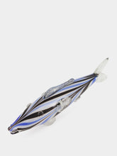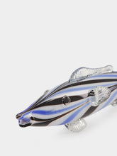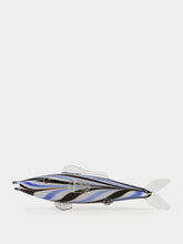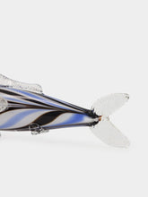 An artisanal glass fish sculpture crafted in rich navy and light blue tones. This exquisite piece captures the fluid elegance of marine life, with a stylised silhouette and smooth finish that reflects light beautifully. Ideal for ocean-inspired interiors or as a striking accent on coffee tables and consoles, it brings colour, movement and artistic depth to any space.