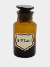 This elegant vintage pharmaceutical glass bottle, marked "Emetiral", captures the minimalist sophistication of mid-century medicinal design. In warm amber and soft white hues, it exudes a refined, archival charm. Whether used as a vase or displayed as a collector’s piece, it adds historical character and understated luxury to any interior.