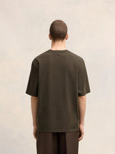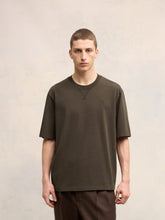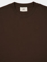 This T-shirt in a dark coffee shade is crafted from heavy organic cotton jersey, offering a boxy fit and comfortable style. Features include tonal Ami de Coeur embroidery on the chest, "AMI" embroidery under the back neckline, and a garment dye wash effect.