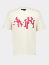 The AMIRI Staggered T-Shirt, crafted from premium cotton features the iconic staggered logo in bold contrast, making it a standout piece. Ideal for a casual yet stylish look, it pairs perfectly with jeans or shorts for a relaxed, fashion-forward ensemble.
