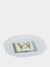 The Small Floral Book Plate is a whimsical piece born from a celebrated collaboration with New York’s king of decoupage. Adorned with colourful, nature-inspired imagery that evokes poetic tattoos on white ceramic, it is handmade in Paris by Astier de Villatte and marked with the artisan’s initials and the brand’s monogram.