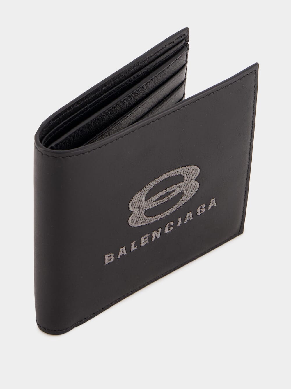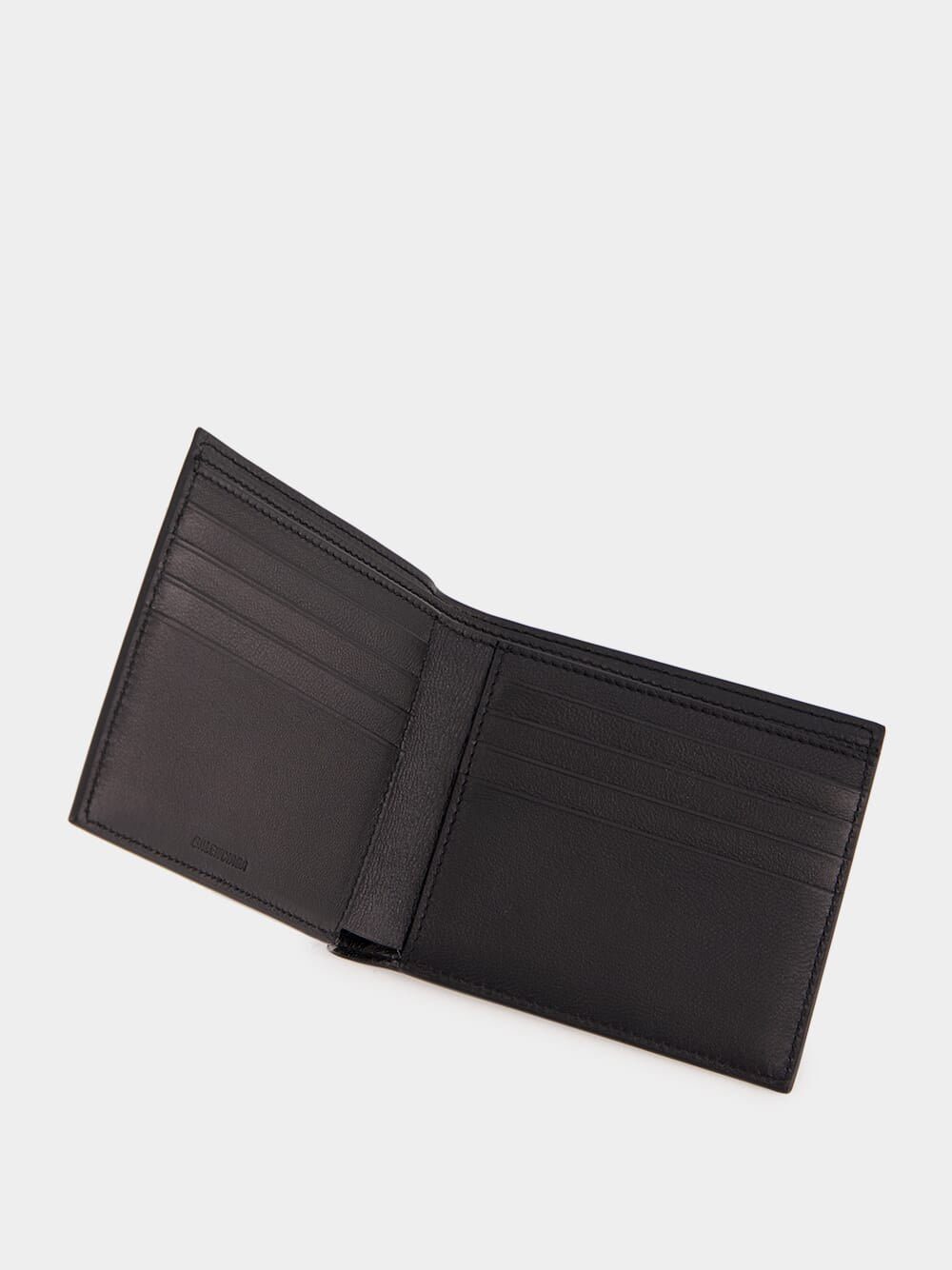 The Black Folded Unity Wallet by Balenciaga combines style and functionality with its sleek design. Crafted from premium leather, it features the distinctive Unity logo and Balenciaga branding on the front, adding a modern touch.