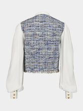 Blue Tweed & Crepe Cropped Jacket