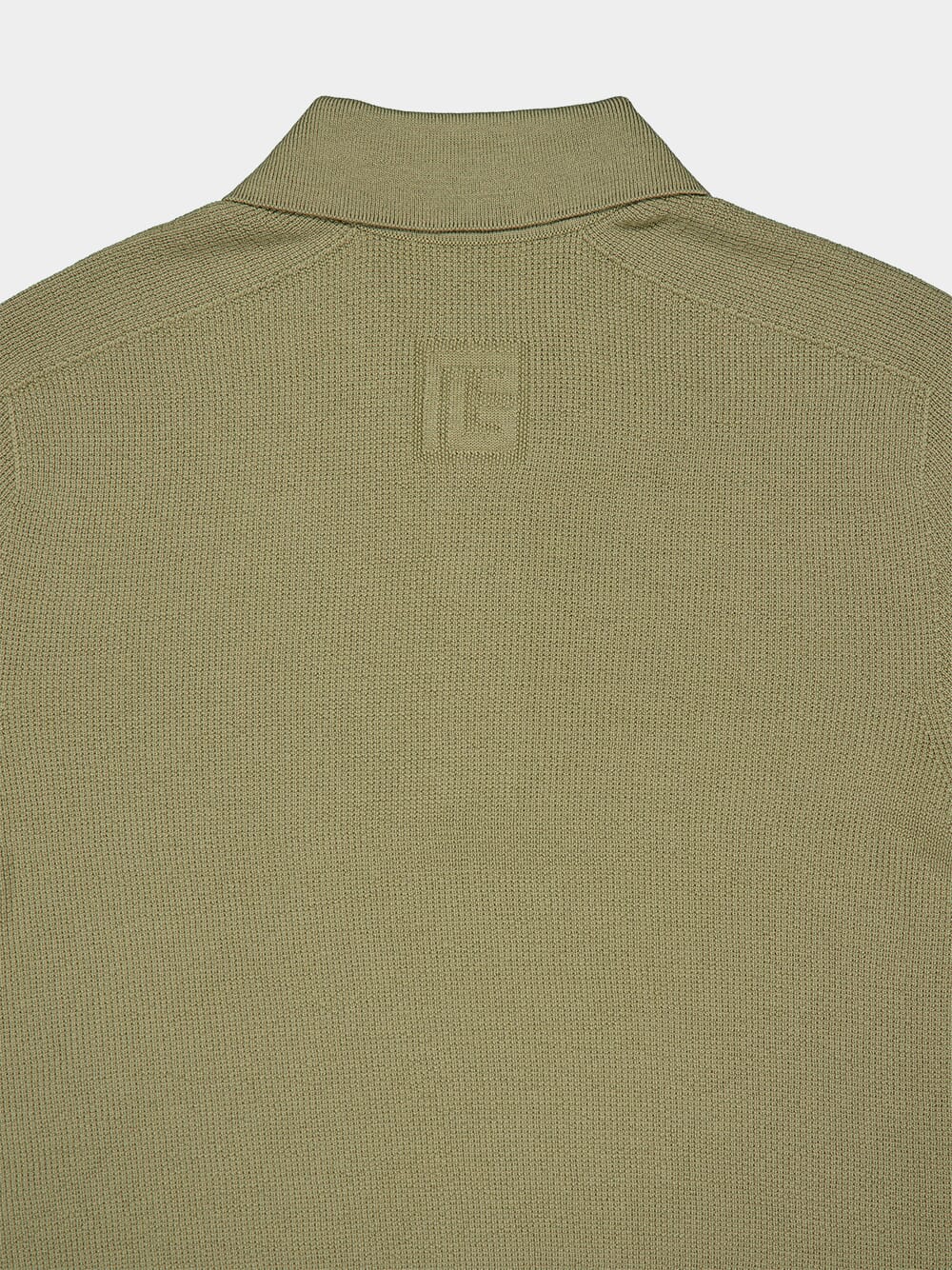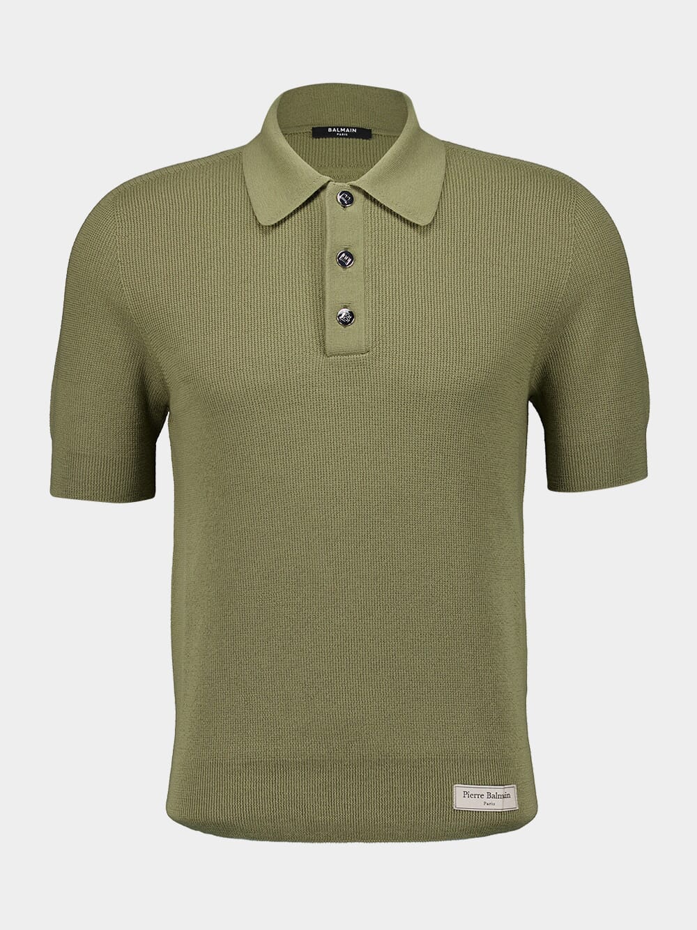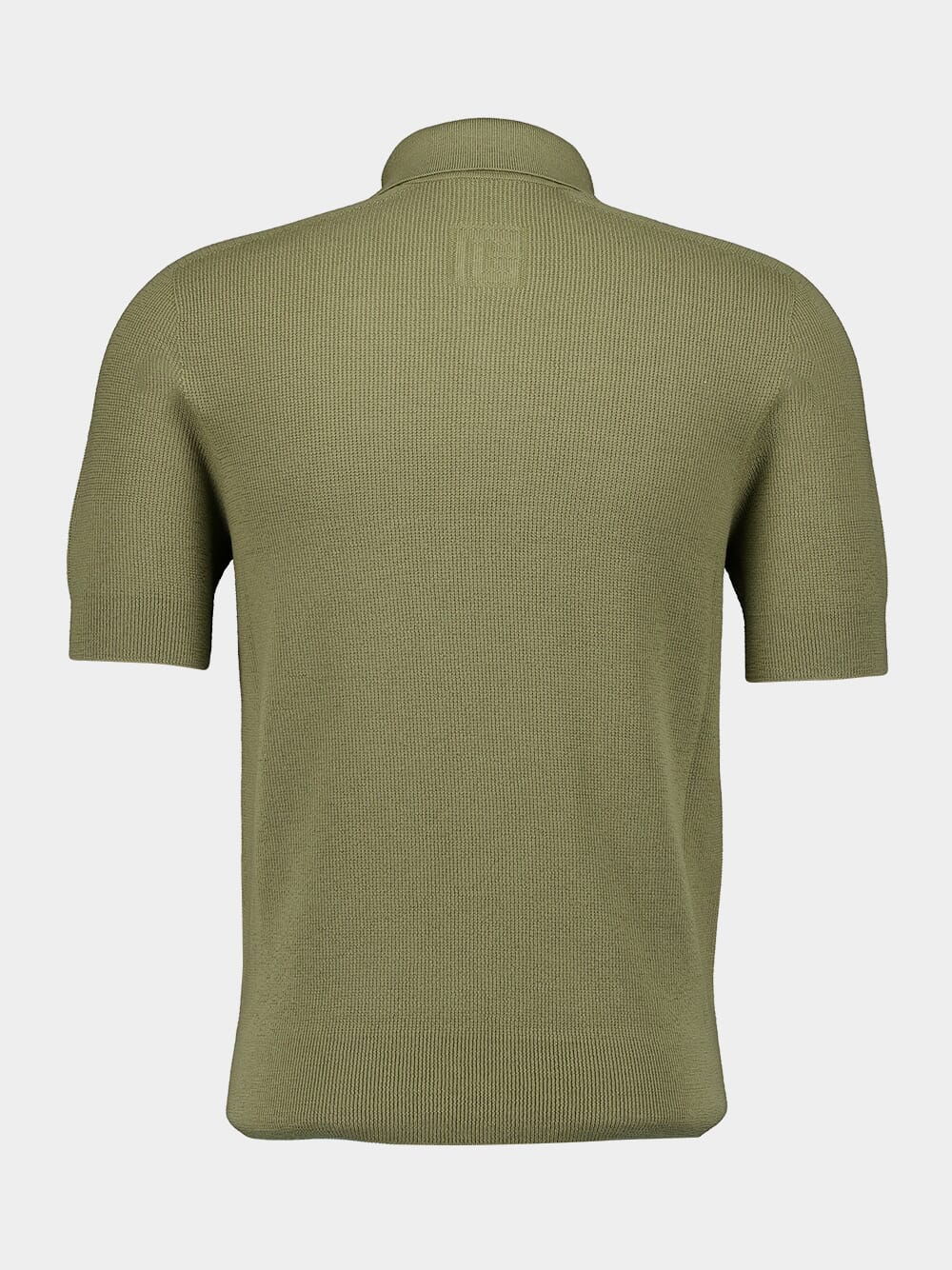 This refined polo shirt in khaki is crafted from premium merino wool, offering an exquisite blend of comfort and sophistication. It features a classic polo collar, short sleeves, and a three-button placket, making it a versatile piece for both casual and semi-formal occasions. The fine wool fabric ensures a soft, breathable feel that is perfect for all seasons. The subtle branding near the hem adds a touch of luxury to this timeless piece, ideal for a stylish wardrobe.
