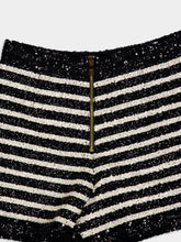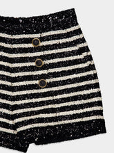 These striped rhinestone-embellished shorts from Balmain feature a bold horizontal stripe print with sparkling rhinestone accents. The decorative button detailing and gold-tone hardware add a luxurious touch. The rear zip fastening with a branded zip puller ensures a secure fit. The straight hem provides a sleek finish. Perfect for making a statement at any fashionable event.