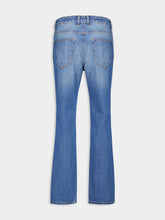 These classic fit denim jeans feature a blue-tone wash, offering a stylish worn-in look with versatile appeal. Crafted with a regular fit for comfort and ease, they are perfect for both casual and refined occasions. The 5-pocket design is enhanced with meticulous details, including metal rivets for durability and a leather logo back strap for a touch of class. These jeans effortlessly combine sporty charm with timeless style.