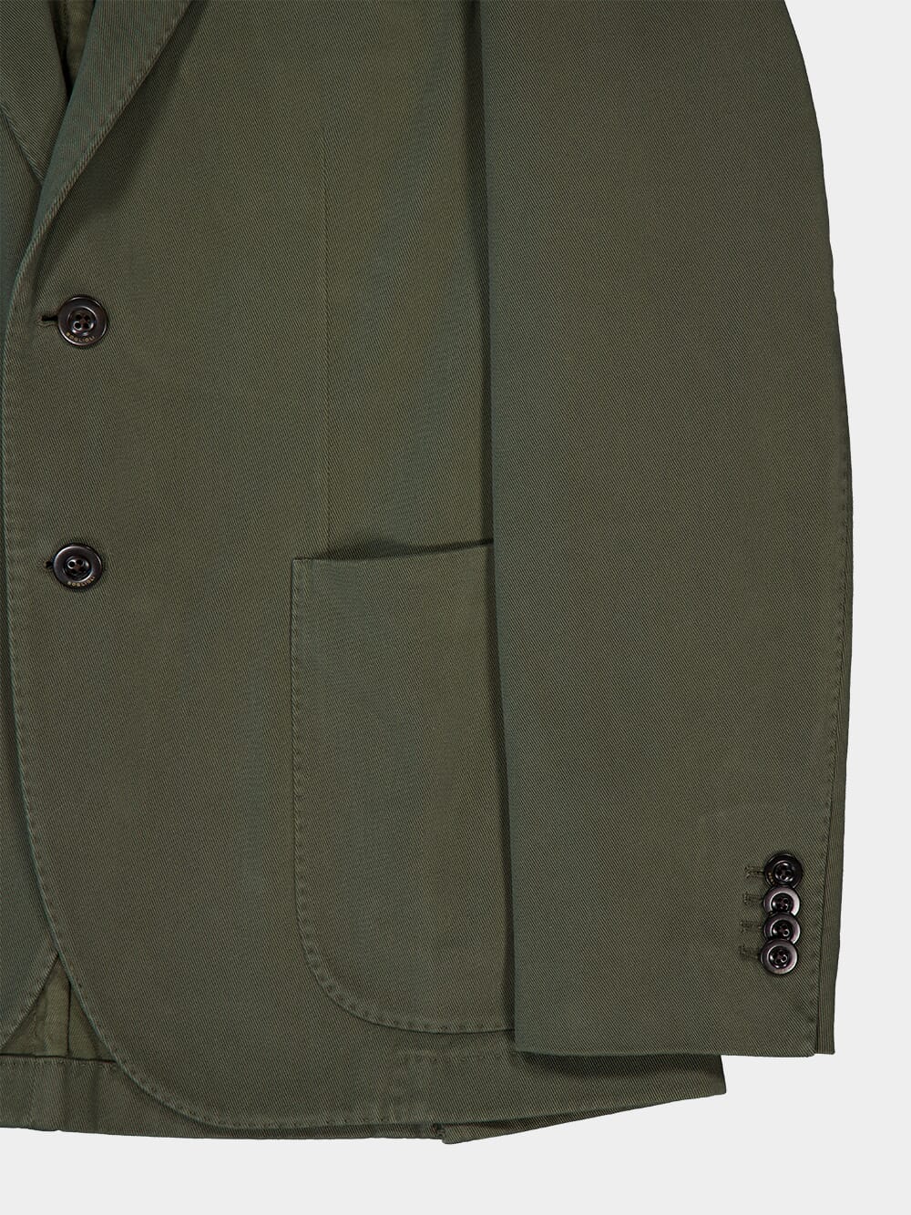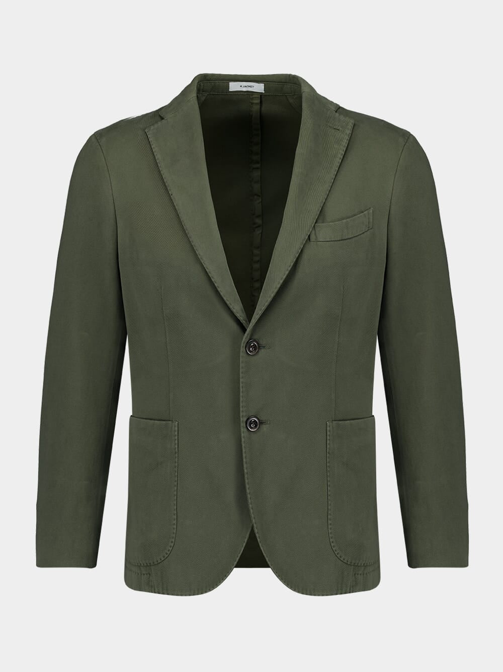 This Boglioli jacket is crafted from stretch cotton, offering a naturally soft and lightweight feel. The distinctive dyeing technique creates unique tones, enhancing its elegance. The slim-fit design features side slits, notch lapels, patch pockets, and a hand-finished breast pocket. Made in Italy.