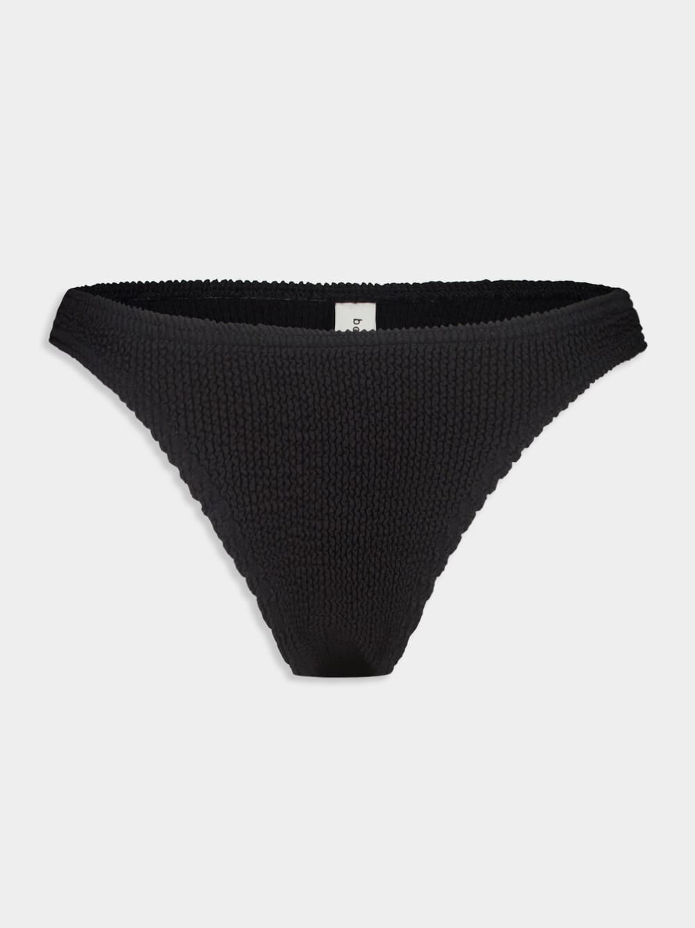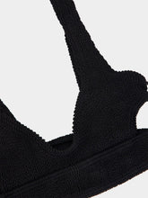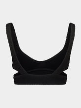The Nino crop bikini top in classic black brings a refined edge to swimwear with its minimalist silhouette and textural sophistication. Designed from eco-conscious crinkled fabric, it offers a sculpted fit with wide straps for support and a square neckline that enhances its modern elegance. This versatile piece transitions effortlessly from beach to resort, appealing to the style-conscious woman who values comfort, sustainability, and timeless allure.