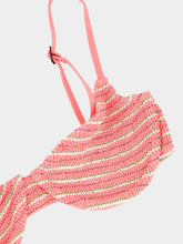 The Gracie bikini top in watermelon stripe delivers a playful twist on timeless elegance. Featuring a balconette-inspired cut with adjustable straps and a soft twist detail at the front, it enhances the bust with gentle support and sculpted fit. Crafted from eco-conscious crinkled fabric, this multicolour piece pairs vibrant energy with sophisticated style—perfect for beachside charm or resort lounging with flair.