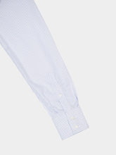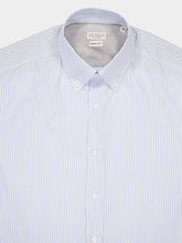 This azure striped slim-fit shirt combines timeless elegance with a modern cut. Made in Italy from pure cotton, it features a button-down collar and a smooth, compact texture with a slightly matte finish. The striped pattern adds a refined touch in seasonal colors, while the slim fit creates a flattering, tapered silhouette through the chest and shoulders. Mother-of-pearl buttons along the placket and cuffs complete the luxurious details. Ideal for both professional and casual wear, this shirt embodies Italian craftsmanship and style.
