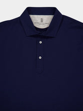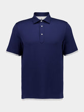This indigo blue polo shirt merges refined style with casual ease, featuring a classic shirt-style collar and button placket. Made in Italy from 100% premium cotton jersey, it offers a soft and smooth feel. The contrast color inserts create an elegant faux-layered effect on the sleeve and hem edges, adding a sophisticated touch to its regular fit. Lightweight and breathable, this polo is ideal for versatile wear, showcasing Italian craftsmanship and a commitment to ethical production values.