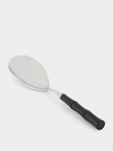 This rice server, with its lustrous silver head and sleek black handle, brings a touch of elegance to any dining affair. Crafted for comfort and efficiency, it is the perfect serving utensil for a sophisticated and modern tablescape.