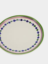 Casa Lopez Pearl white ceramic bread plate with blue and green pattern handpainted.