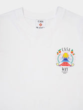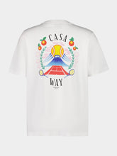 The Casablanca Casa Way Mountain T-shirt in white is a bold expression of the brand’s playful visual identity. Crafted in Portugal from 100% organic cotton, this short-sleeve design features seasonal artwork printed on the front and back, reinterpreting the house’s emblem with vibrant motifs. With a relaxed fit and classic crew neck, it’s a statement piece for elevated casualwear.