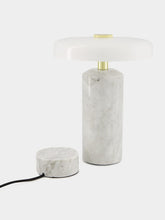 Clean lines and simple design in beautiful materials. We have thought about every detail in our new take on the portable, rechargeable LED lamp; The sculptural design with polished marble and mouth-blown glass gives Trip a particular exclusive look; Trip offers both outdoor and indoor illumination. Use Trip in the middle of the dining table for an intimate atmosphere, in the bookcase, the window sill or the nightstand, you can even take it outdoor - the possibilities are endless as there are "no strings attached".
