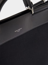 The Sicily bag in black calfskin and panama fabric embodies refined sophistication and timeless design. Made in Italy, it features a structured silhouette with smooth leather trim, showcasing the fusion of durability and elegance. With generous dimensions and a clean aesthetic, it is the perfect companion for the modern man seeking style and function. Delivered in a branded box with a dust bag.