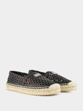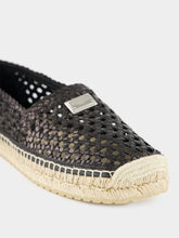 These modern black espadrilles offer a refined take on a warm-weather essential. Crafted in Italy from soft woven calfskin, they feature a rope-trimmed sole, a branded rubber outsole, and a metal logo tag for a signature finish. The interior blends lambskin and goatskin for enhanced comfort, while the artisanal construction highlights Dolce&Gabbana's dedication to quality and elegance.