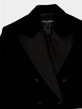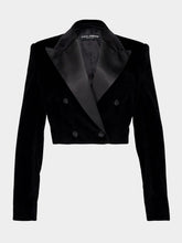 Black Cropped Double-Breasted Velvet Tuxedo Blazer