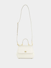 The iconic Medium Sicily handbag by Dolce & Gabbana is crafted in refined white Dauphine calfskin, embodying timeless sophistication. Featuring a structured silhouette with a front flap and hidden magnetic closure, it includes a top handle and an adjustable, detachable strap. The gold-tone logo plaque and metal feet studs enhance its luxurious appeal. Inside, it offers a printed fabric lining, a zipped pocket and a phone holder. A versatile classic.
