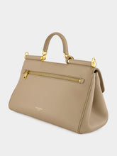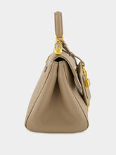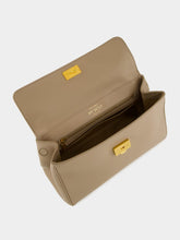 Refined and timeless, the My Sicily handbag in beige plongé calfskin adds elegance to any ensemble. Featuring vintage brass details, leather top handles, and a removable shoulder strap, it balances classic form with modern practicality. With a tuck-in closure and interior zip pocket, it securely holds essentials like keys and a phone. Crafted in Italy using certified sustainable leather for the contemporary, sophisticated woman.