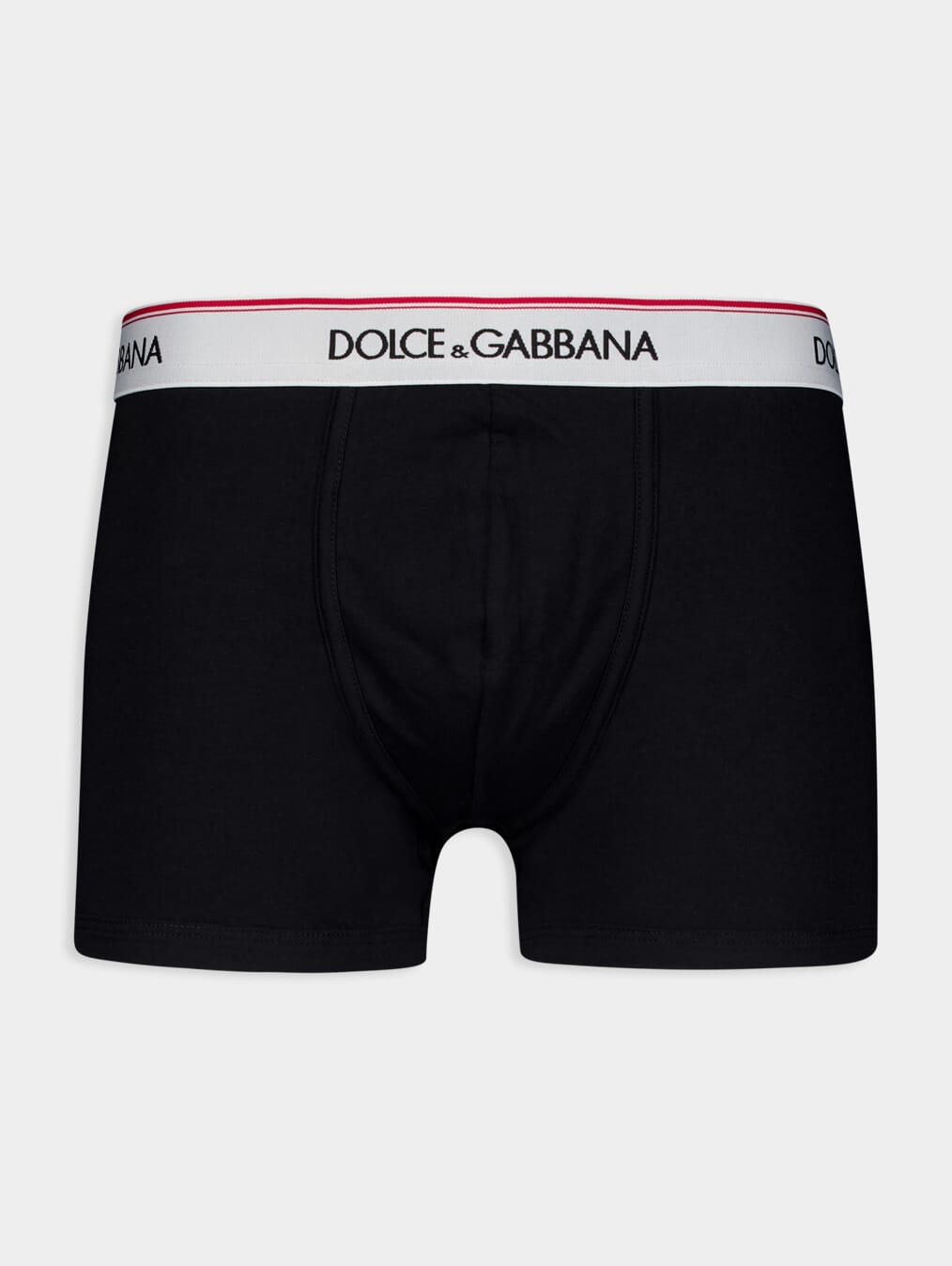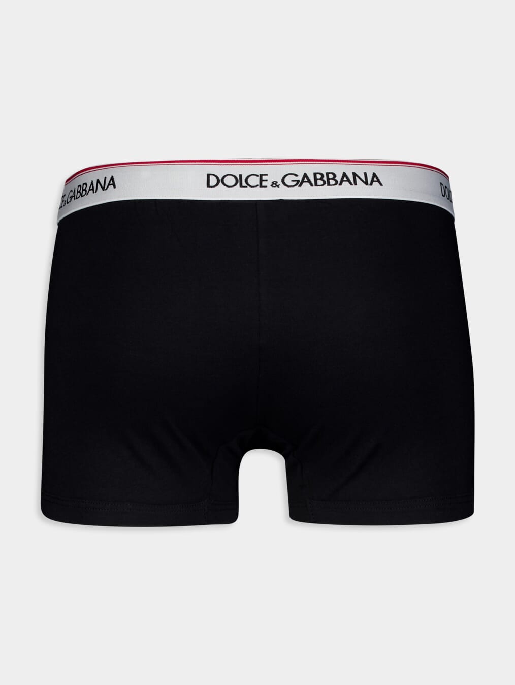 Two-Pack Cotton Jersey Boxers, offering practical and comfortable men's essentials in two-way stretch cotton jersey. This set includes two pairs of regular briefs in stylish black and red, providing versatile options for your daily wear. These boxers feature a soft elasticated waistband adorned with a contrasting Dolce&Gabbana logo, delivering both comfort and style. With their loose fit, these boxers ensure all-day ease.