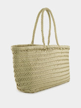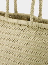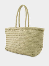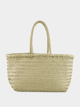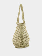 The Pearl Triple Jump Big is the larger version of Dragon Diffusion’s signature woven tote. Handwoven from smooth buffalo calf leather with a distinctive diagonal chevron weave, this unlined, open-top basket is both elegant and practical. Ideal for beach days or weekend markets, it includes the brand’s signature antiqued St. Christopher medal charm—an emblem of authenticity.