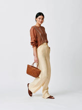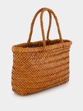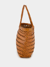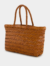 The "Mini Flat Gora" in tan is a signature piece, handwoven from supple buffalo calf leather. Its compact size and lightweight structure make it perfect for essential carry, while the intricate basket weave and subtle top twist lend it a distinctive elegance. An ideal everyday companion with effortless charm. Finished with a hand-sewn St. Christopher medal, symbol of Dragon Diffusion’s artisanal authenticity.