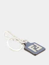 The FF Squared Key Ring by Fendi is a sleek geometric accessory crafted from blue calf leather with a contrasting brown FF canvas back. Featuring a palladium-finish metal clip and logo-engraved ring, this refined piece merges elegance with functionality. Its compact design makes it ideal for keys or as a stylish bag charm. Made in Italy, it reflects Fendis iconic craftsmanship and attention to detail.