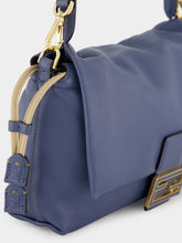 The iconic Mamma Baguette returns in a soft, deconstructed update for SS25. Crafted in luxurious blue nappa leather, it features a tone-on-tone FF clasp, suede-lined compartment, and beige leather drawstring ties. The detachable handle and shoulder strap offer versatile wear on the shoulder or crossbody. A timeless evolution of a beloved silhouette.