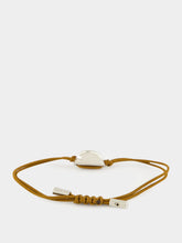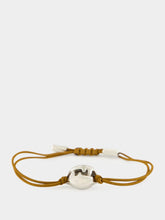 The FF Shell bracelet by Fendi features a refined design with a brown polyester ribbon, adjustable with sliding knots and polished metal tips. At its center, a stylised shell element in palladium-finish brass is engraved with the iconic FF logo, reflecting Fendi's distinctive aesthetic. Made in Italy, this minimalist yet statement piece is ideal for everyday elegance or layered styling.