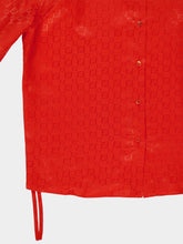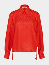 A statement piece in lustrous red silk, this shirt is adorned with an all-over FF jacquard motif for a refined monogrammed effect. Featuring a classic collar, long sleeves with ties at the cuffs, and a front button closure, the silhouette is both elegant and contemporary. Crafted in Italy, it brings luxurious flair to everyday ensembles.