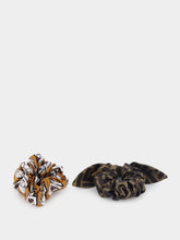 Set of Two Multicolour Silk Hair Elastics. This exquisite pair of silk-covered hair bands effortlessly combines style and functionality. One elastic boasts a captivating print featuring the brand's iconic motifs in timeless beige and brown hues, while the other showcases the signature FF motif.