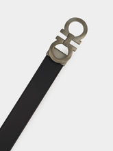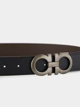 This iconic Ferragamo belt blends timeless style with functional elegance. Crafted in supple calfskin, it features a reversible design in black and hickory tones, complemented by the signature Gancini buckle in brushed ruthenium-tone with logo detail. The adjustable and detachable buckle ensures a custom fit, making it a versatile accessory that transitions seamlessly from formal to casual ensembles.