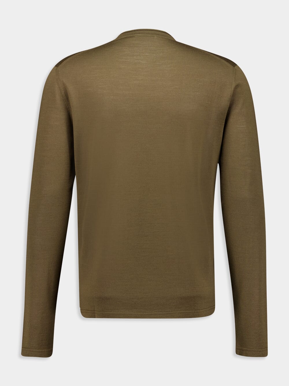 This classic long-sleeve crew neck sweater in olive is made from pure virgin wool, providing a luxurious lightweight feel and exceptional warmth. With its clean design and soft texture, it’s an ideal layering piece for casual and smart-casual occasions. The breathable material ensures comfort and style throughout the year, making it a versatile wardrobe essential.