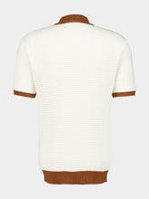 The Ivory & Dark Almond Vidal Polo blends vintage charm with contemporary craftsmanship. Made from 100% cotton in a crochet-inspired pointelle knit, it offers a breathable and lightweight feel. The relaxed fit is elevated with contrasting dark almond collar, cuffs, and hem. Finished with branded corozo buttons, it's a refined essential perfect for layering or standalone summer wear.